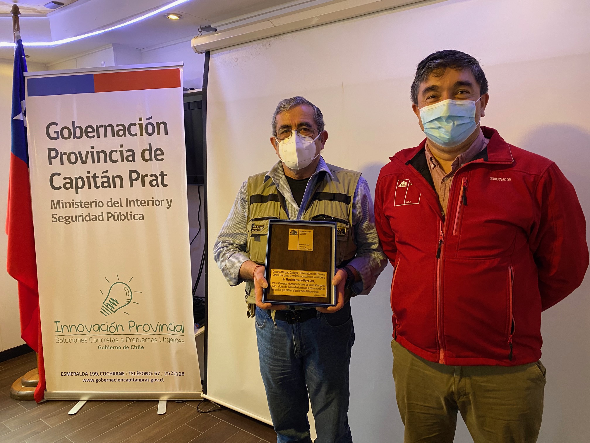 Cochrane. De la mano del Gobernador provincial Gustavo Márquez, vecino de la comuna de Cochrane Marcial Moya, recibe reconocimiento por la labor de tantos años como radioaficionado, siendo este el principal canal de comunicación entre los pobladores del sector rural con la ciudad.